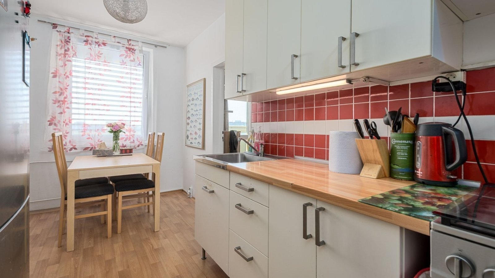 • Součástí prodeje je kuchyňská linka a vestavěné úložné prostory, ostatní vybavení bude vyklizeno před předáním bytu